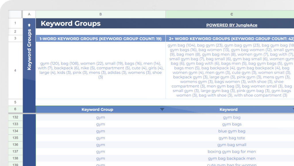 Optimized Keyword Grouping organizes your search terms into strategic clusters for more effective Amazon PPC campaigns and product launch strategies. By leveraging grouped keywords that have historically performed well together, you can more accurately target your audience and tailor your campaigns to the Amazon algorithm’s preferences.