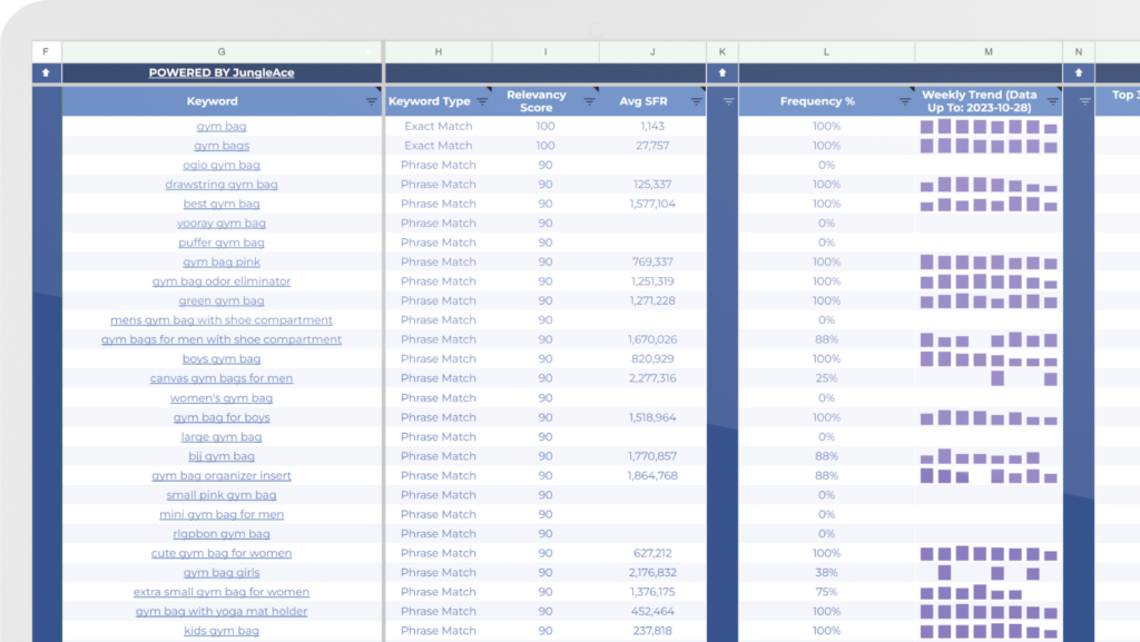 Leveraging Amazon Brand Analytics data, we focus on the relevance and potency of keywords, extracting top search terms to enhance your product’s visibility. This allows you to target high-converting, high traffic keywords that are most relevant to your products and customers on Amazon.